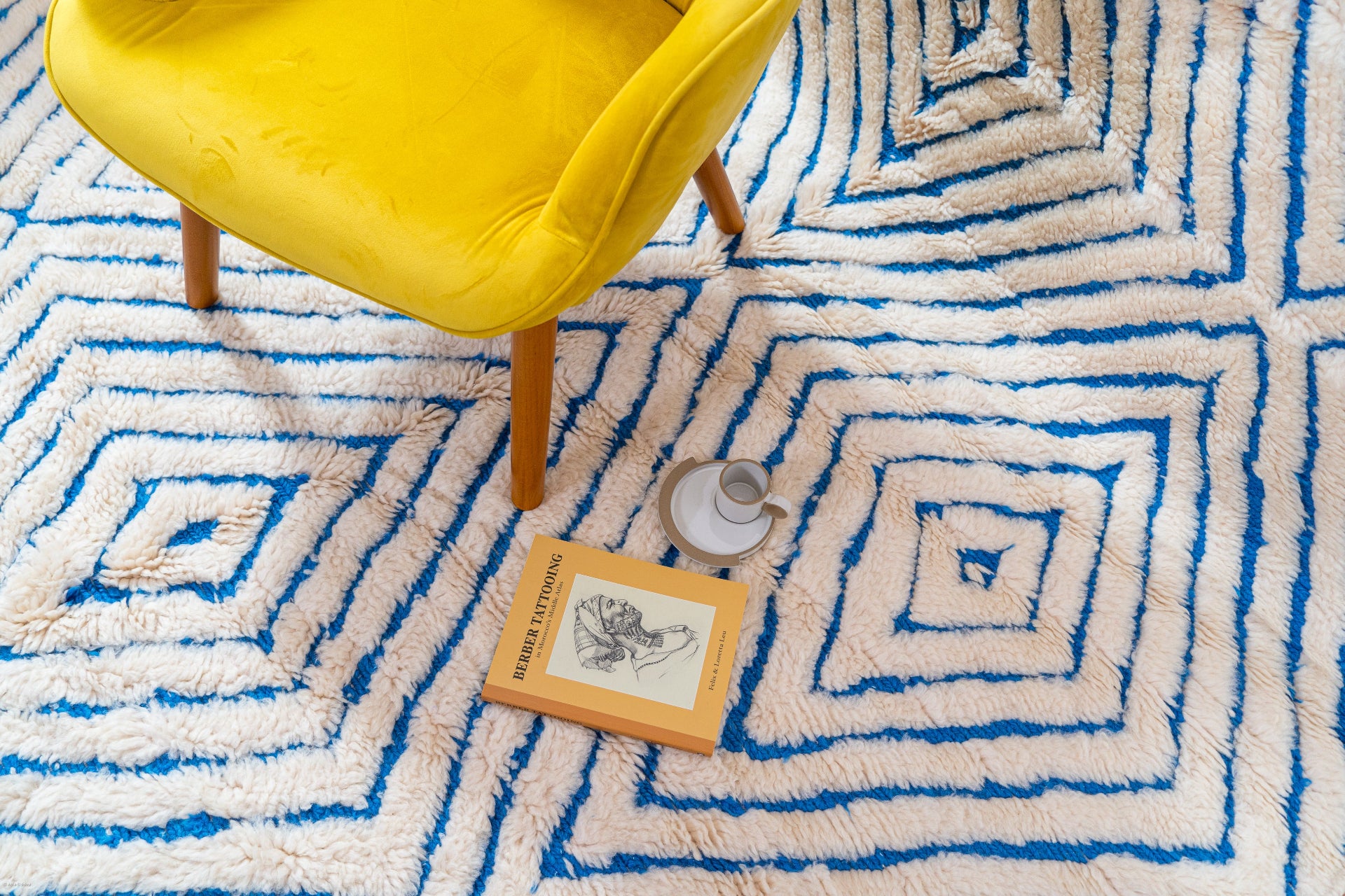 Chaoun is more than a nod to a beautiful city—it’s a woven reflection of heritage. The soft blues and whites mirror the iconic buildings of Chefchaouen and echo the Amazigh relationship with nature, water, and sanctuary. The rug’s minimal patterning allows its color to speak for itself, inviting calm and openness into the room.