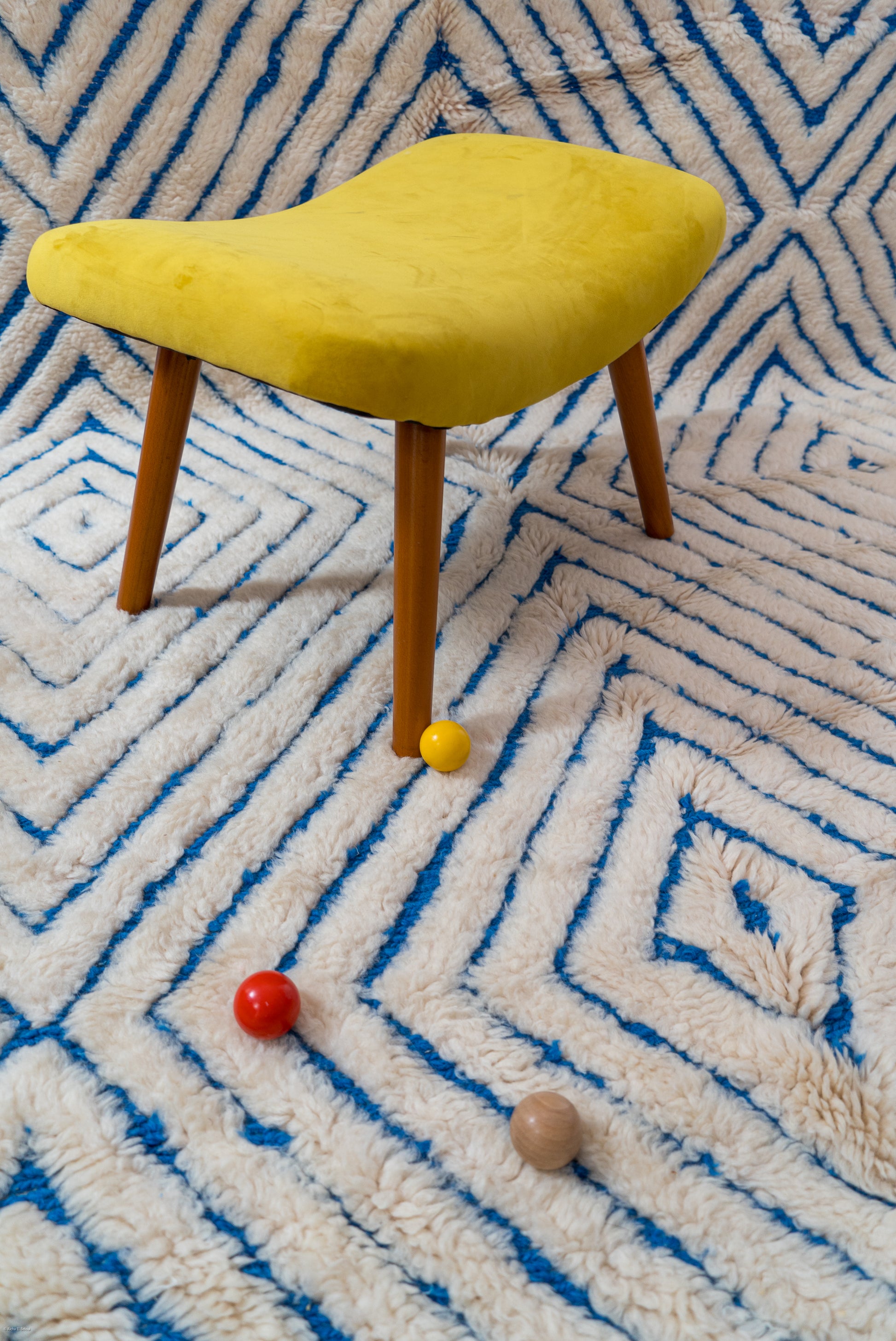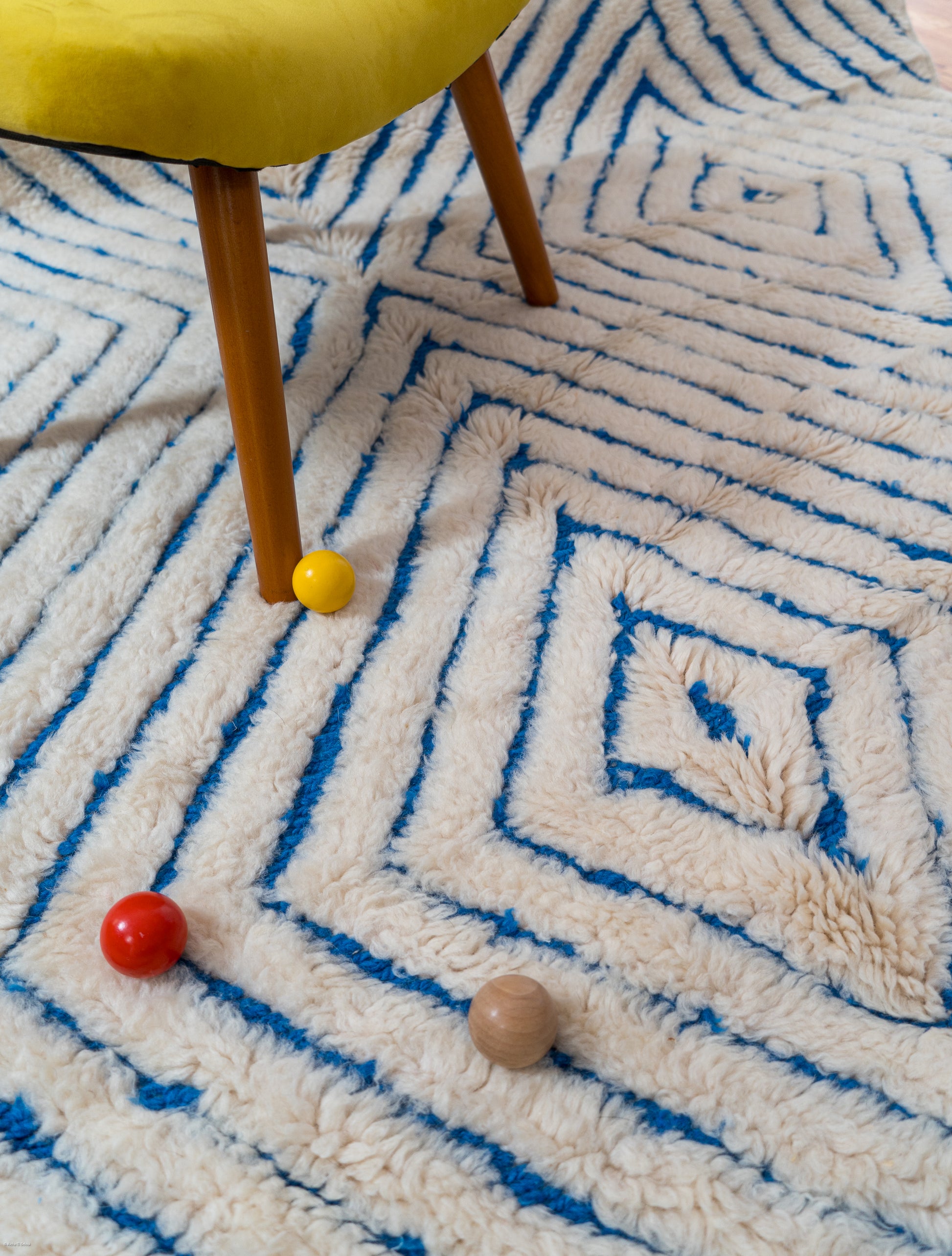 Its handwoven wool construction ensures durability and comfort, while the design reflects intentionality—each line and curve shaped by the weaver’s vision and emotion. Whether adorning a coastal-inspired space or softening a city apartment, Chaoun offers timeless elegance rooted in cultural memory.