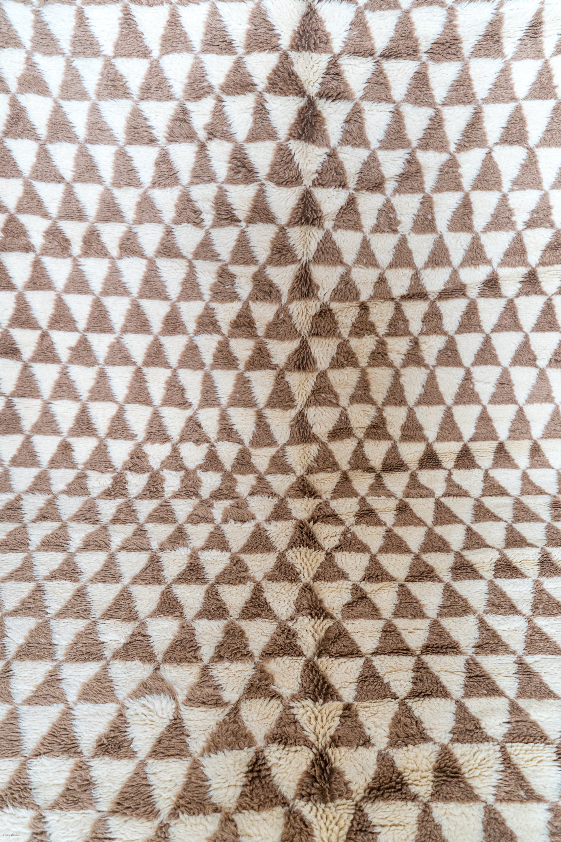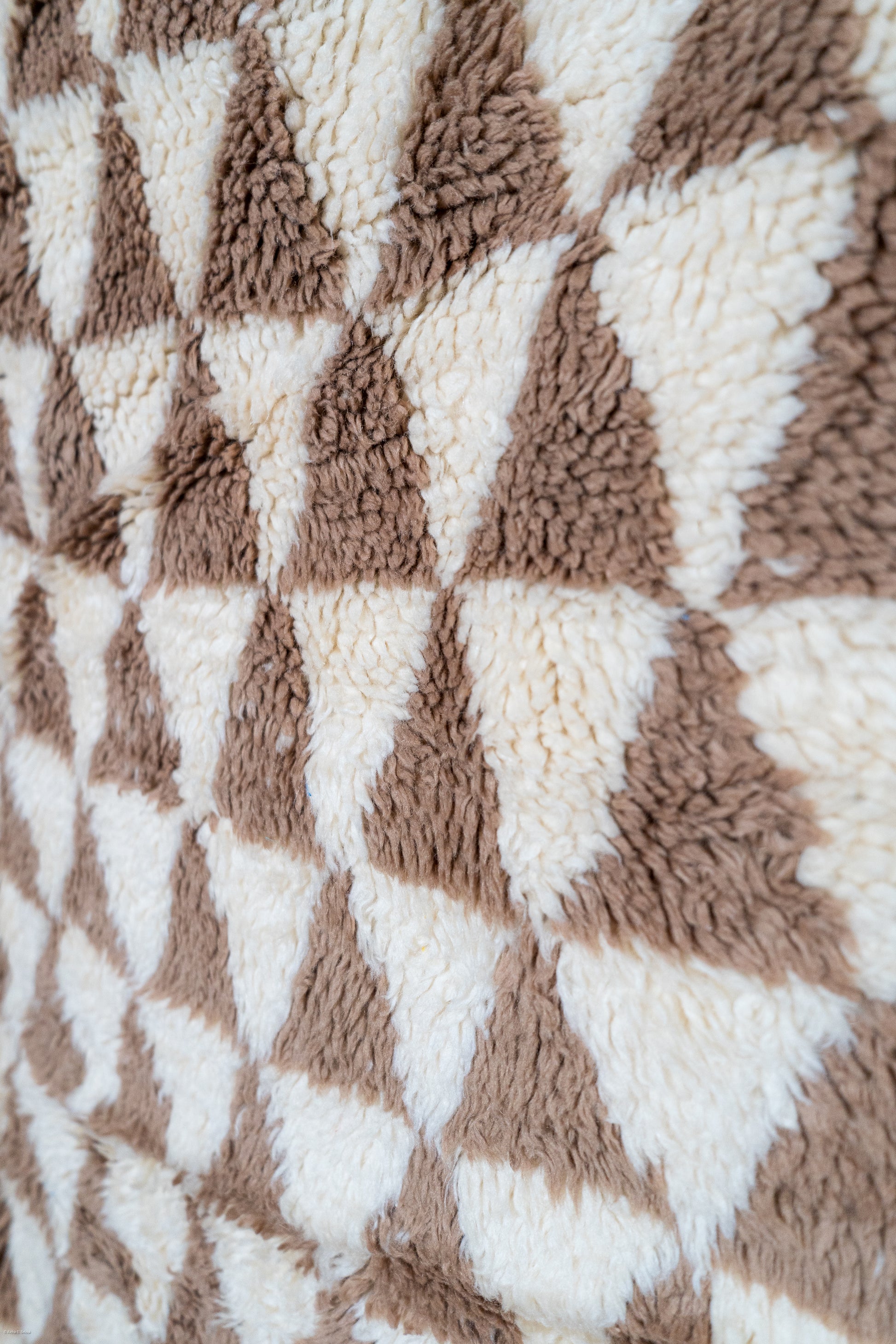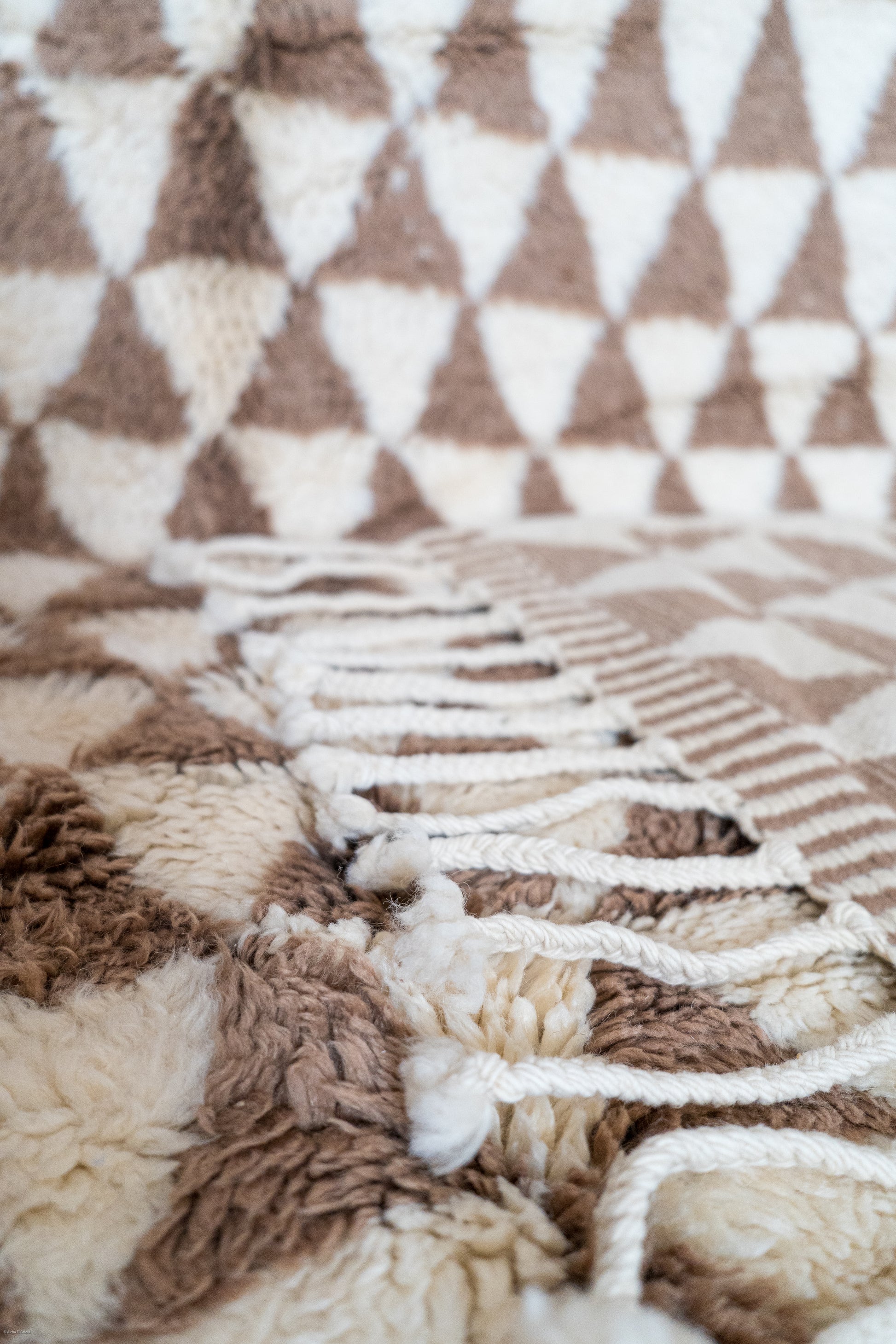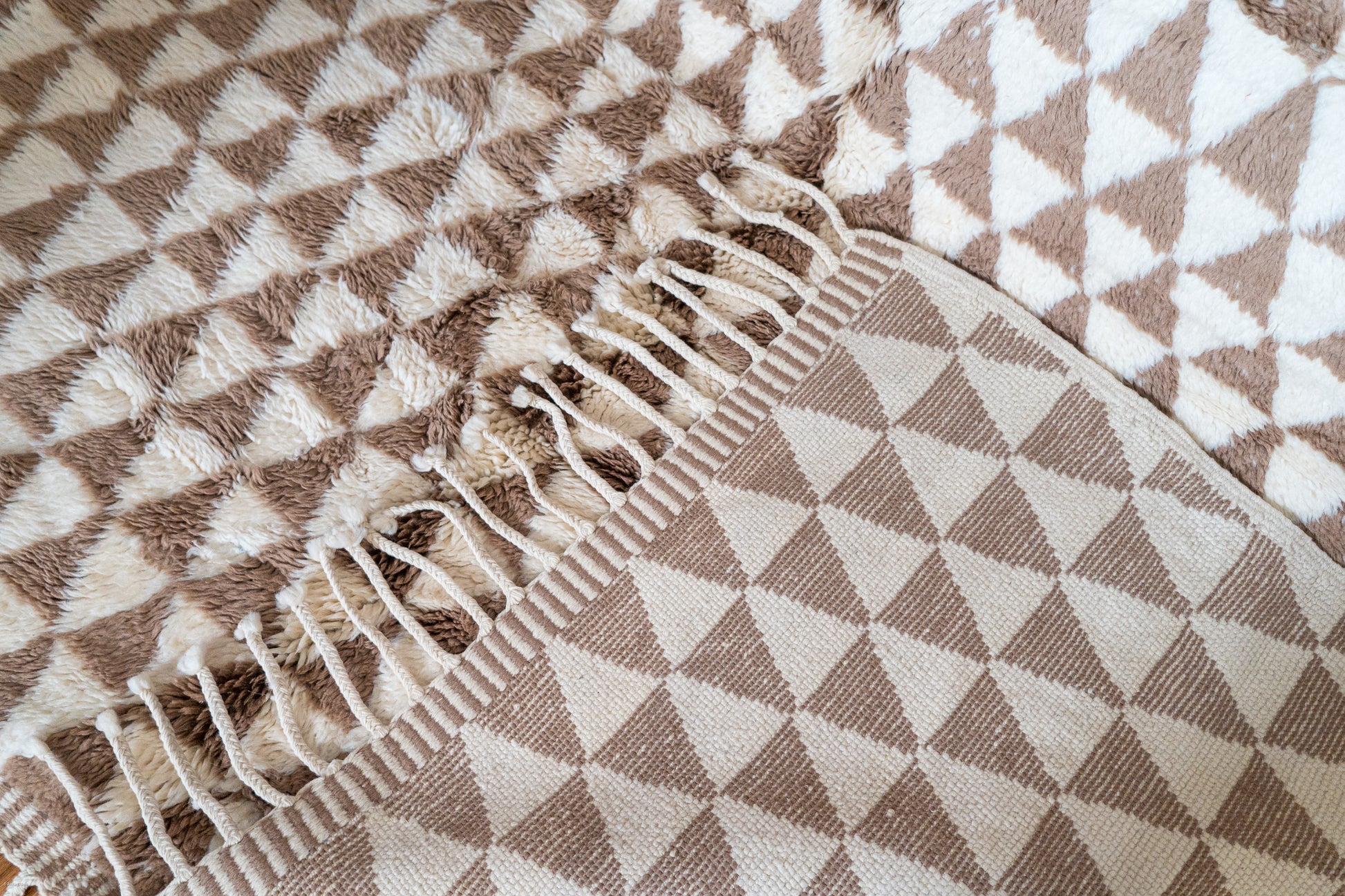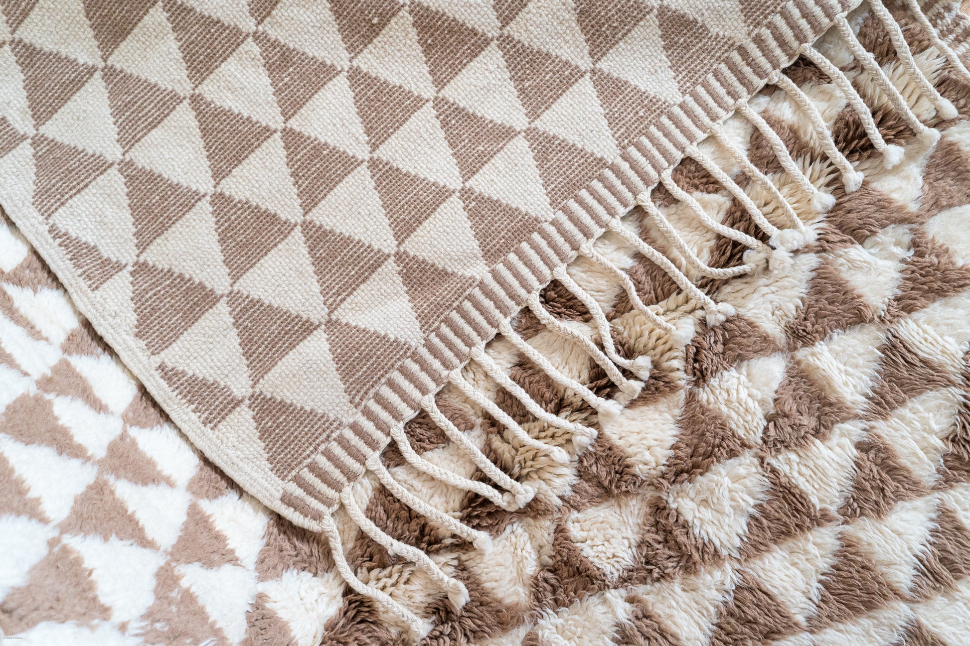 Aurel is a striking expression of geometric beauty rooted in the cultural heritage of the Amazigh people. Its simple yet bold triangle pattern creates visual depth and movement, while the rich brown and neutral tones give it a sophisticated, timeless feel.