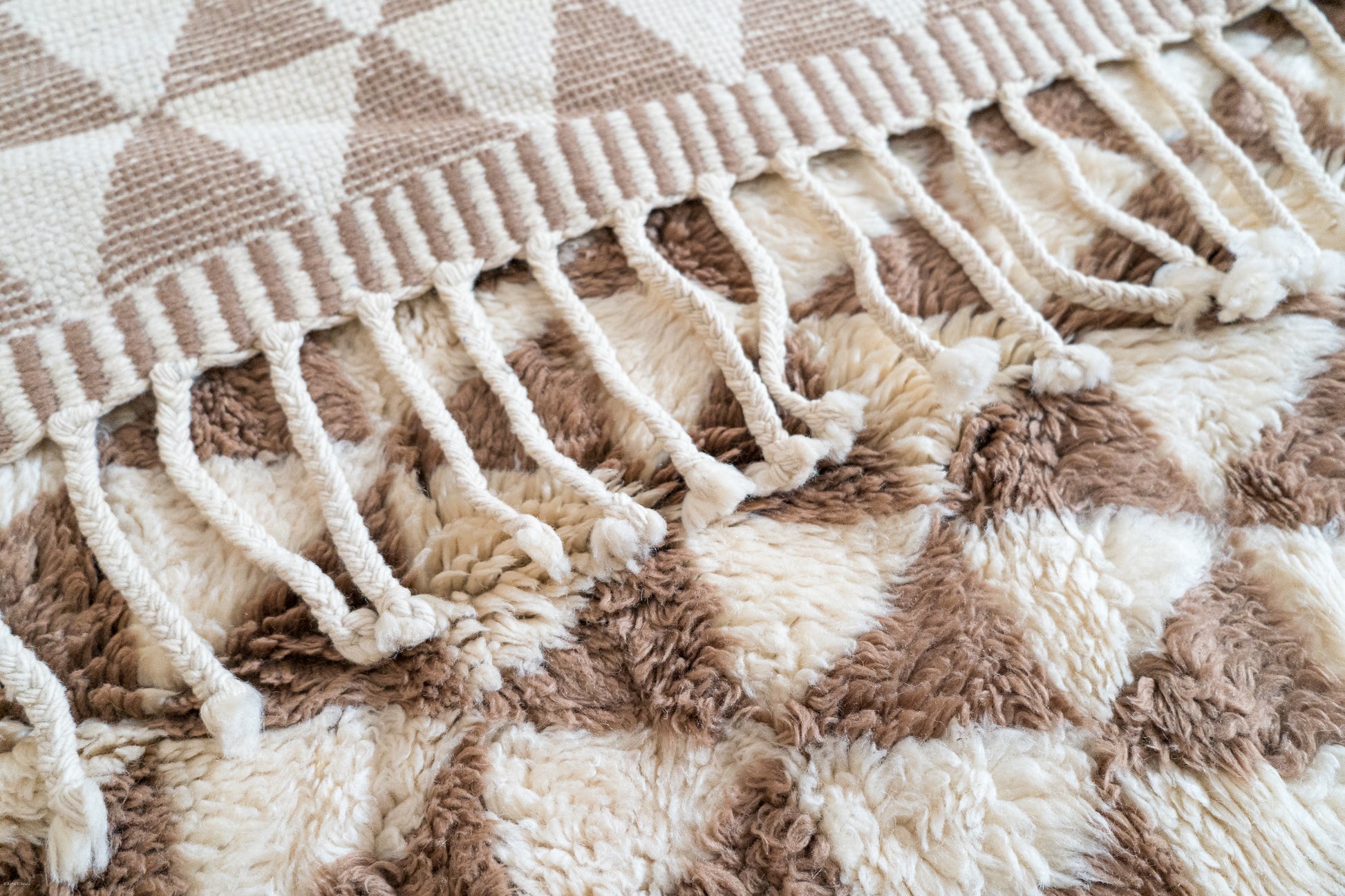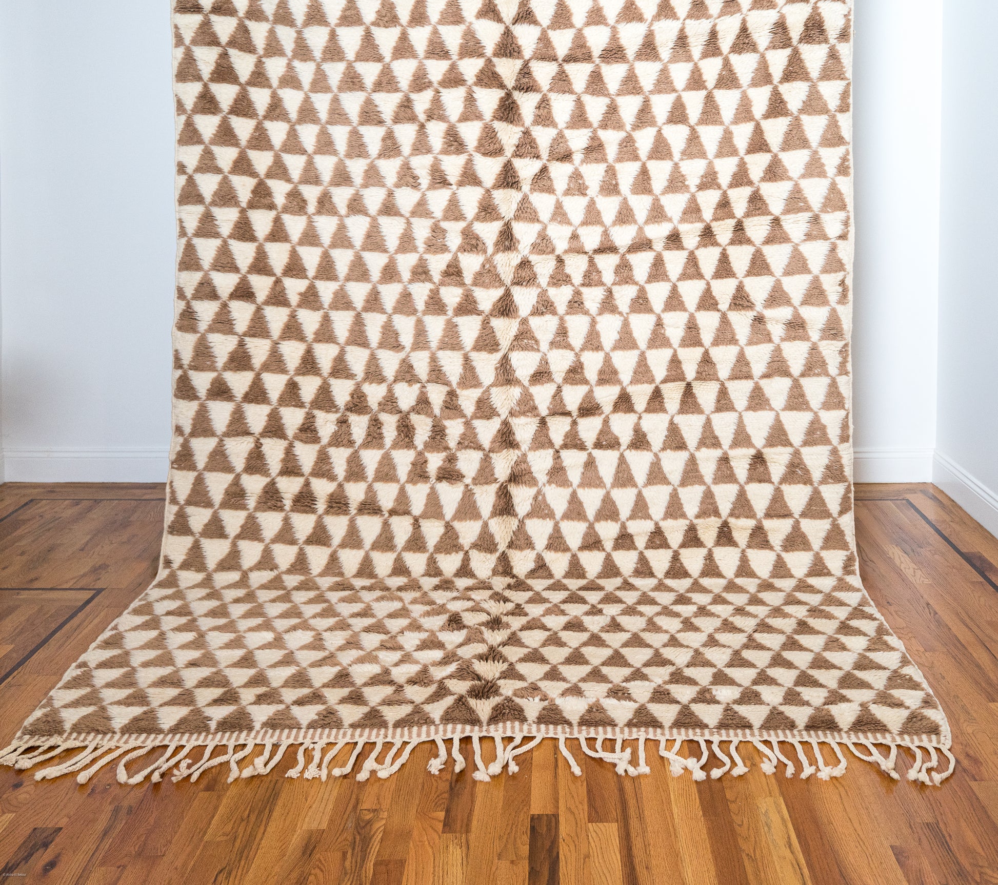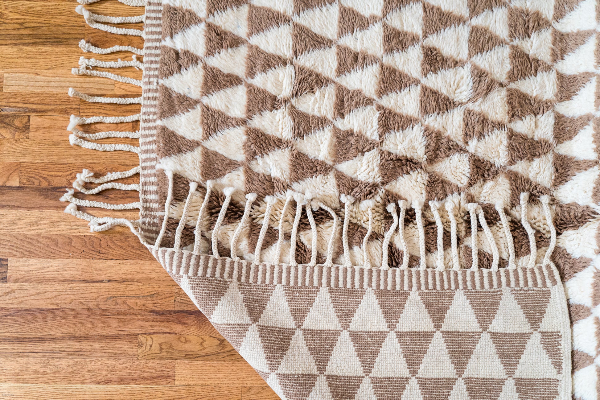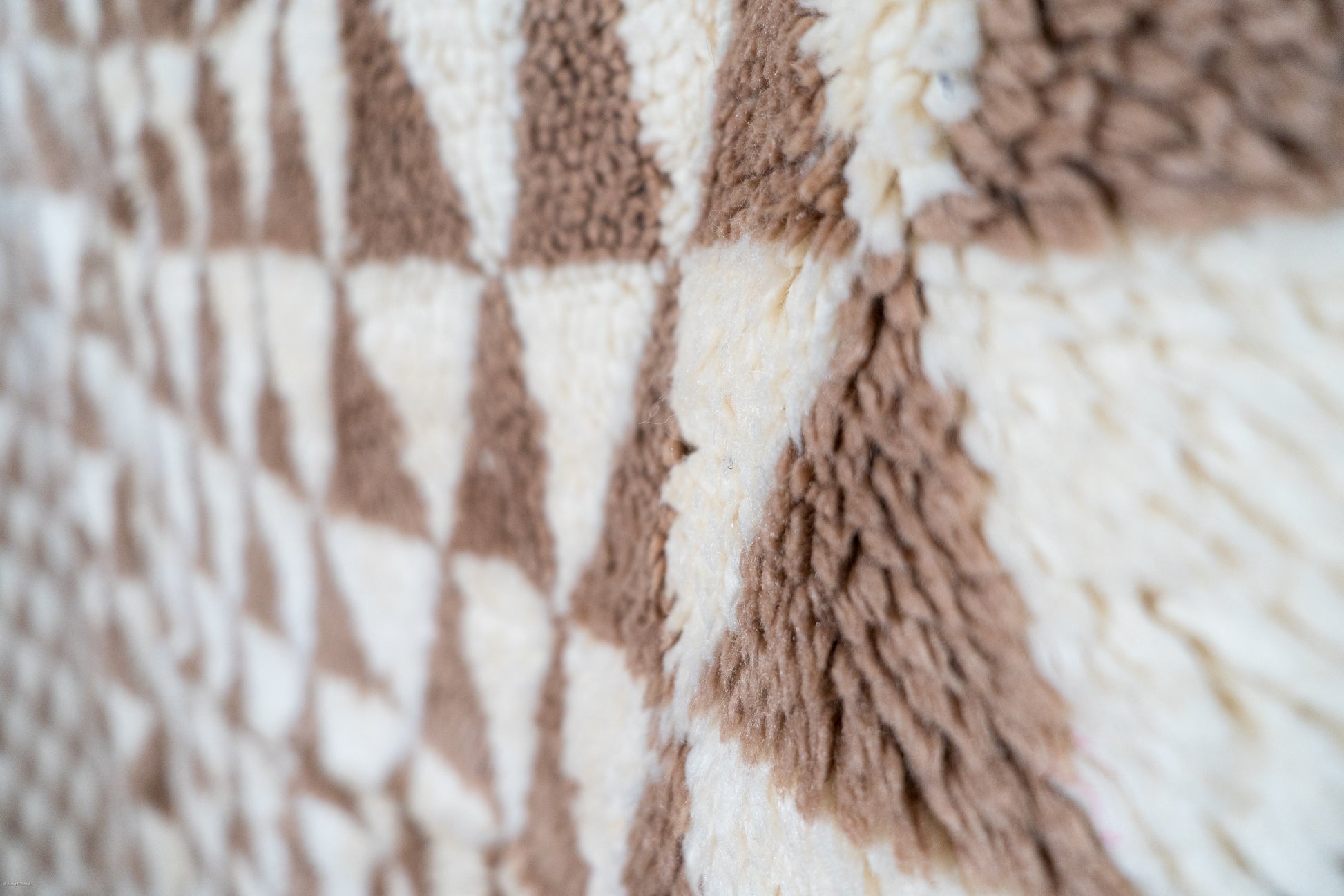 Aurel is a striking expression of geometric beauty rooted in the cultural heritage of the Amazigh people. Its simple yet bold triangle pattern creates visual depth and movement, while the rich brown and neutral tones give it a sophisticated, timeless feel.