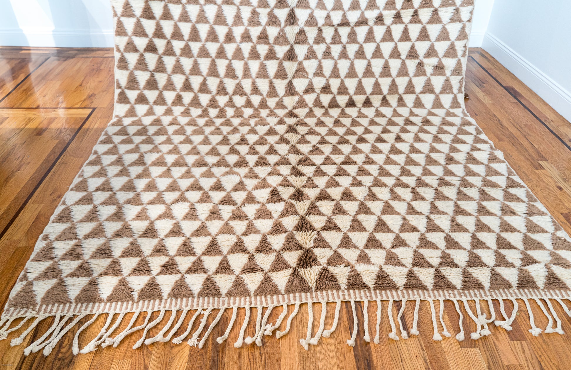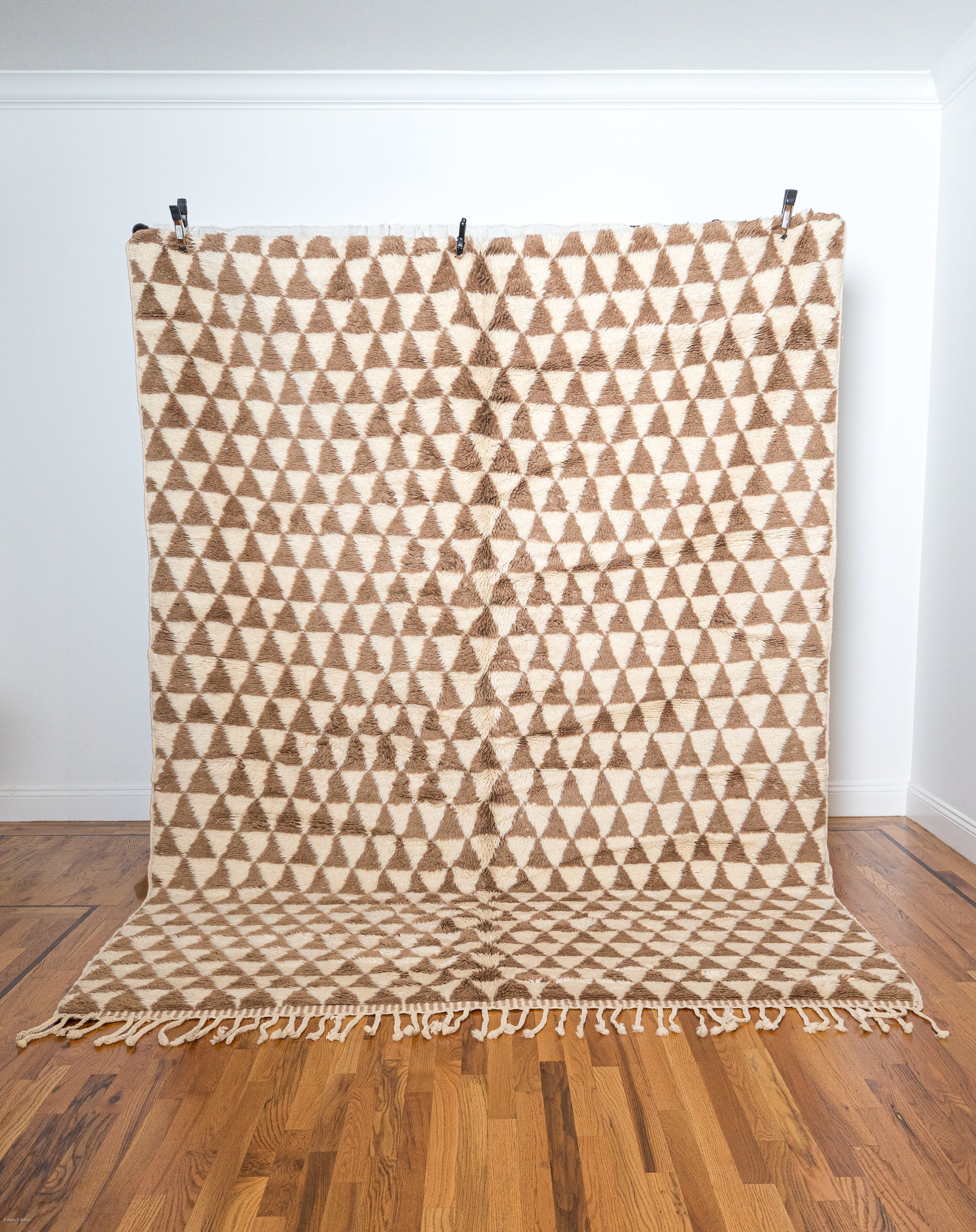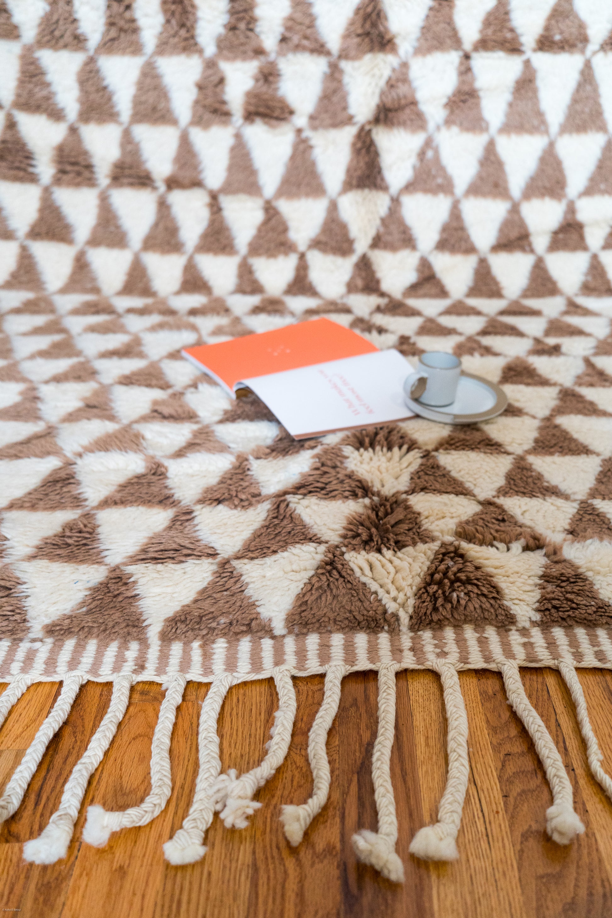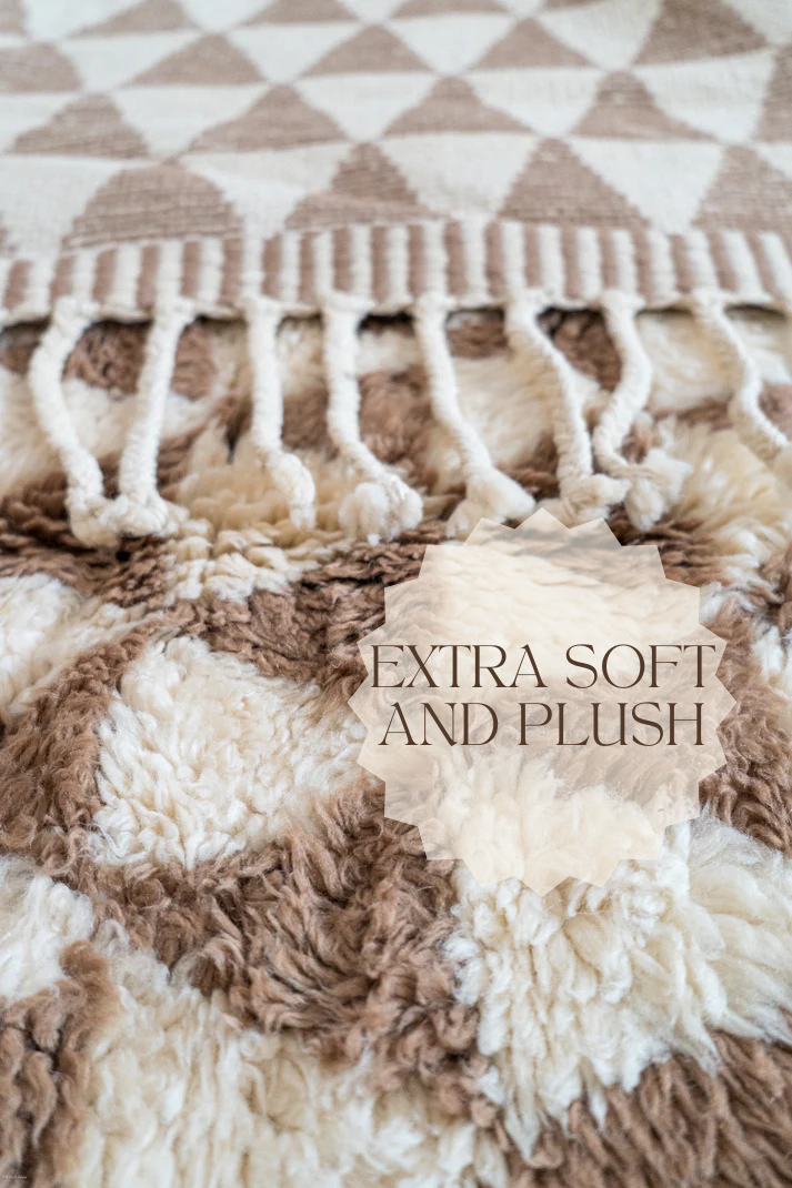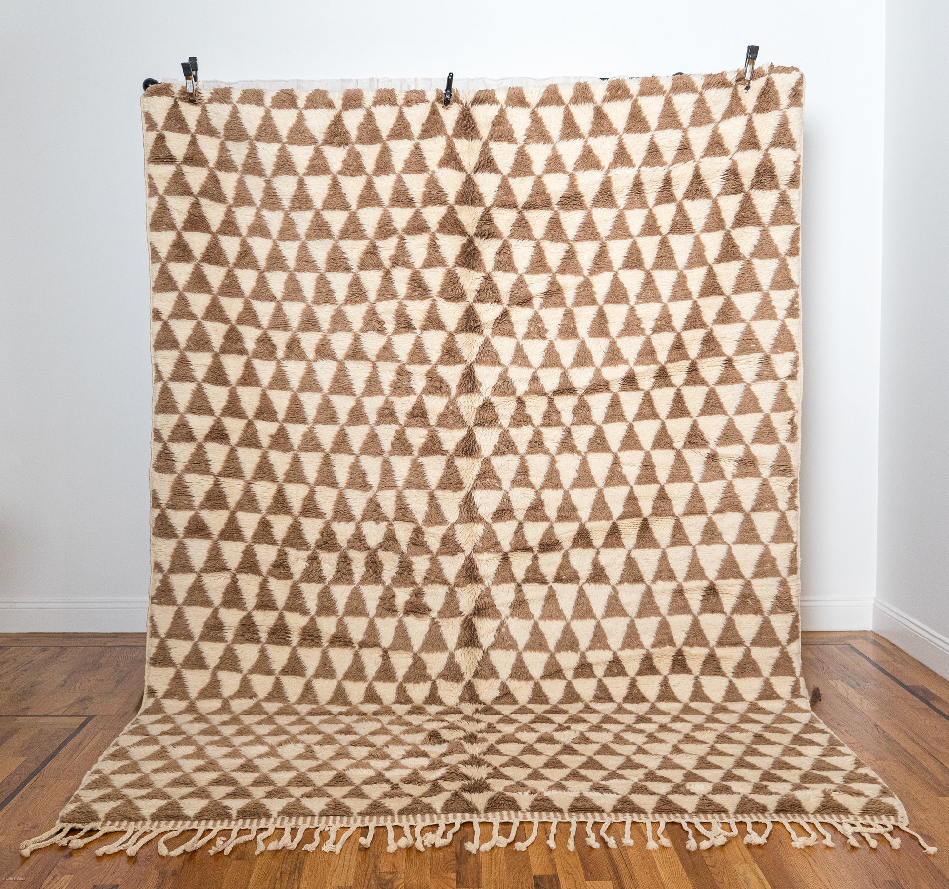Aurel is a striking expression of geometric beauty rooted in the cultural heritage of the Amazigh people. Its simple yet bold triangle pattern creates visual depth and movement, while the rich brown and neutral tones give it a sophisticated, timeless feel.